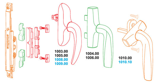 Для запирания поворотной створки. С помощью деталей 1 и 2 и на поворотной, и на поворотно-наклонной створке может быть создана дополнительная точка запирания.